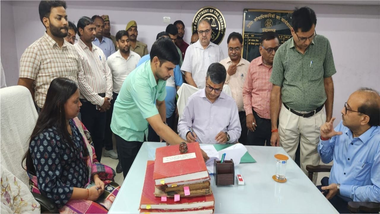 Prayagraj: जिले के नवनियुक्त जिलाधिकारी मनीष कुमार वर्मा ने बृहस्पतिवार को कार्यभार ग्रहण कर लिया। कोषागार पहुंचकर चार्ज लेने के बाद उन्होंने एडीएम, एसडीएम और अन्य वरिष्ठ अधिकारियों से परिचय प्राप्त किया तथा कलेक्ट्रेट परिसर का निरीक्षण किया। इस दौरान उन्होंने लगभग एक घंटे तक जनसुनवाई भी की।