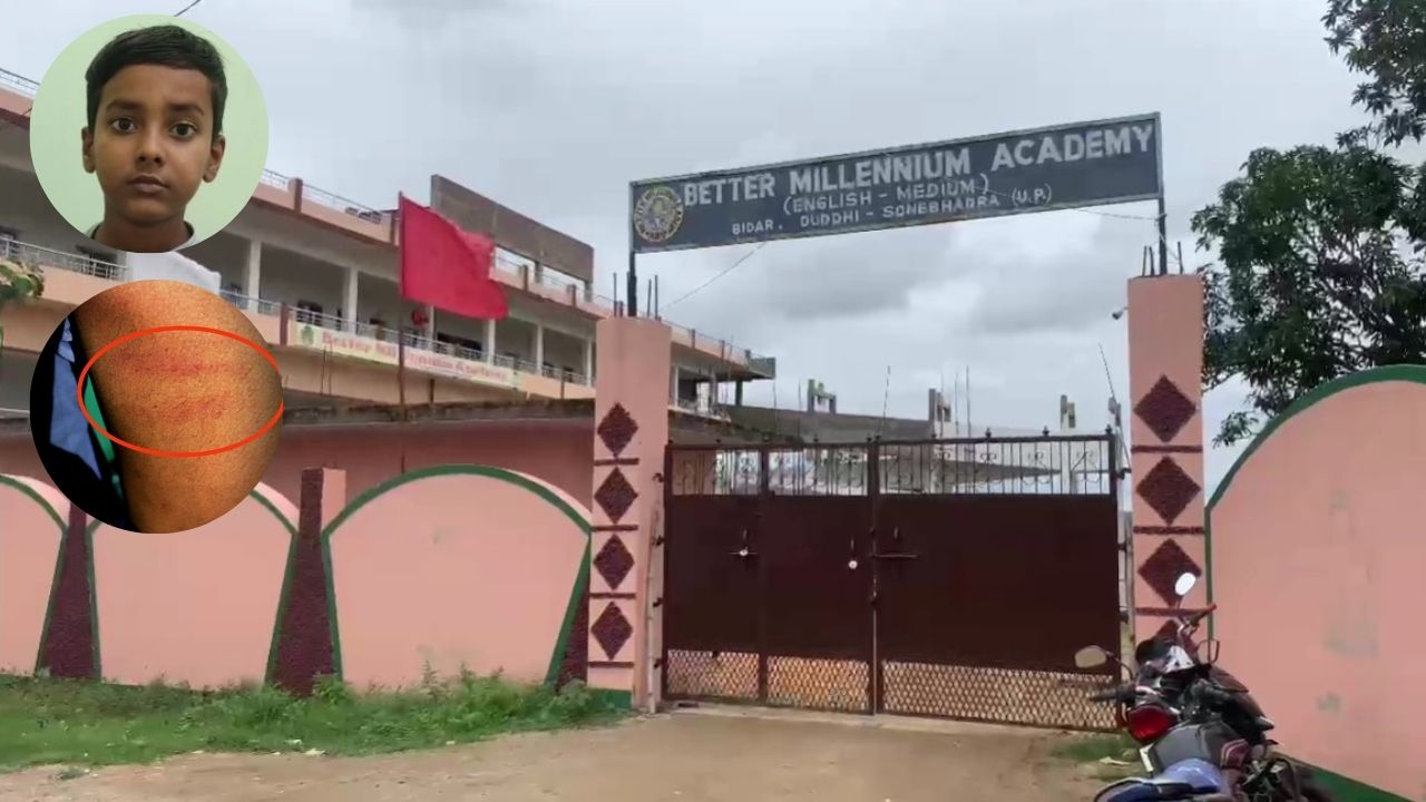 Sonbhadra: जिले के दुद्धी स्टेशन रोड स्थित बेटर मिलेनियम स्कूल एक बार फिर विवादों में घिर गया है। यहां कक्षा 2 में पढ़ने वाले मासूम छात्र शिवम मौर्य को स्कूल के प्रधानाचार्य ने कापी न लाने के कारण बेरहमी से पीटा। छात्र के शरीर पर मारपीट के कई चोट के निशान देखे गए हैं। इस घटना के बाद शिवम अब स्कूल जाने से डर रहा है और उसने साफ कह दिया है कि वह फिर कभी उस स्कूल में नहीं जाएगा।