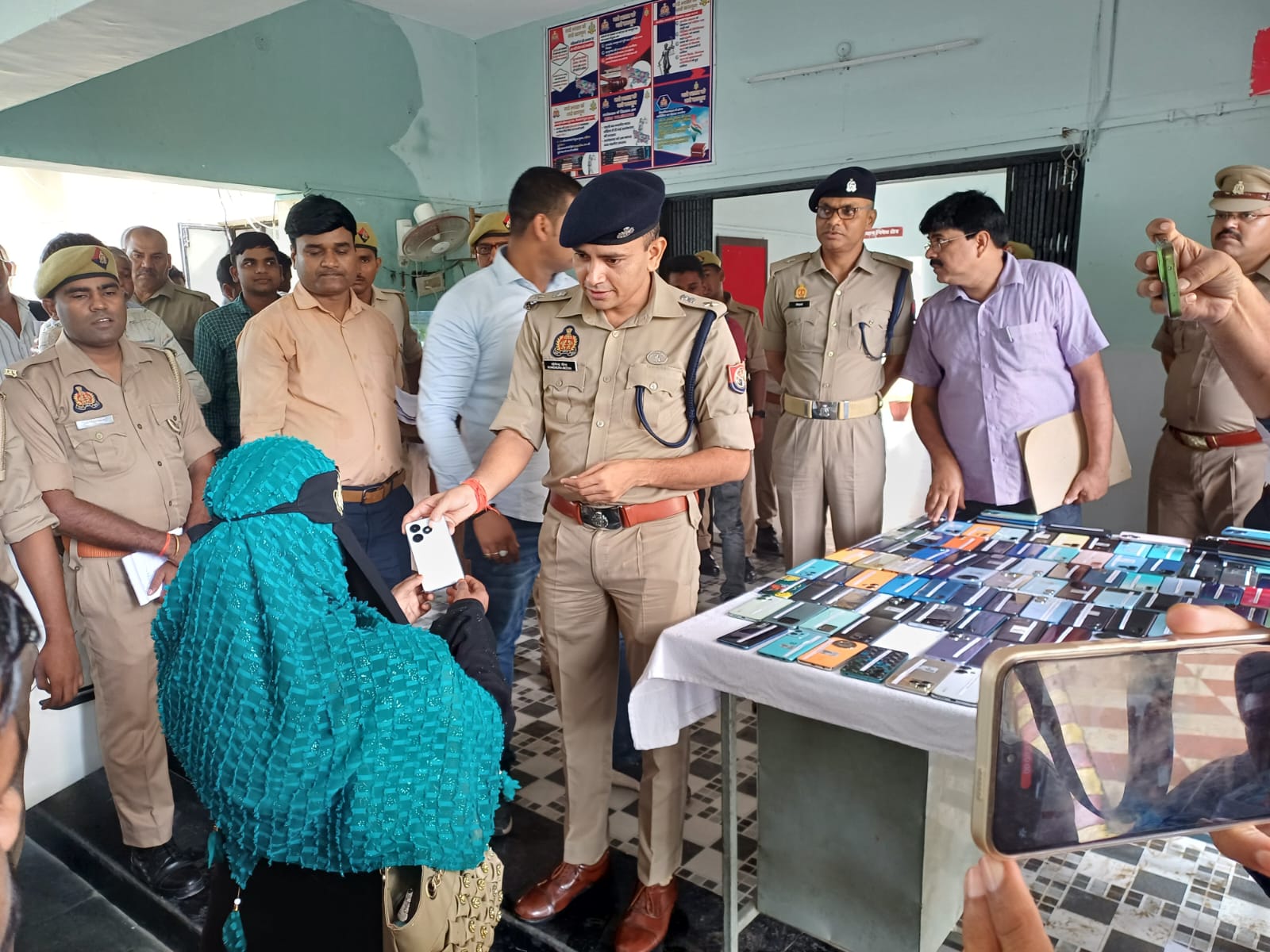 महिला को फोन लौटाते एसपी