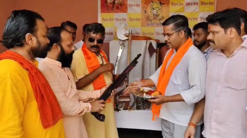 Muzaffarnagar: विजयदशमी का पर्व हर साल बुराई पर अच्छाई की जीत के रूप में मनाया जाता है। इस बार मुजफ्फरनगर जिले के शिवसेना कार्यालय में विशेष आयोजन हुआ, जहां शिवसेना कार्यकर्ताओं ने विधिपूर्वक शस्त्र पूजन किया। कार्यक्रम के दौरान कार्यकर्ताओं ने शस्त्रों पर तिलक किया और पूजा अर्चना की, साथ ही हथियारों का प्रदर्शन भी किया।