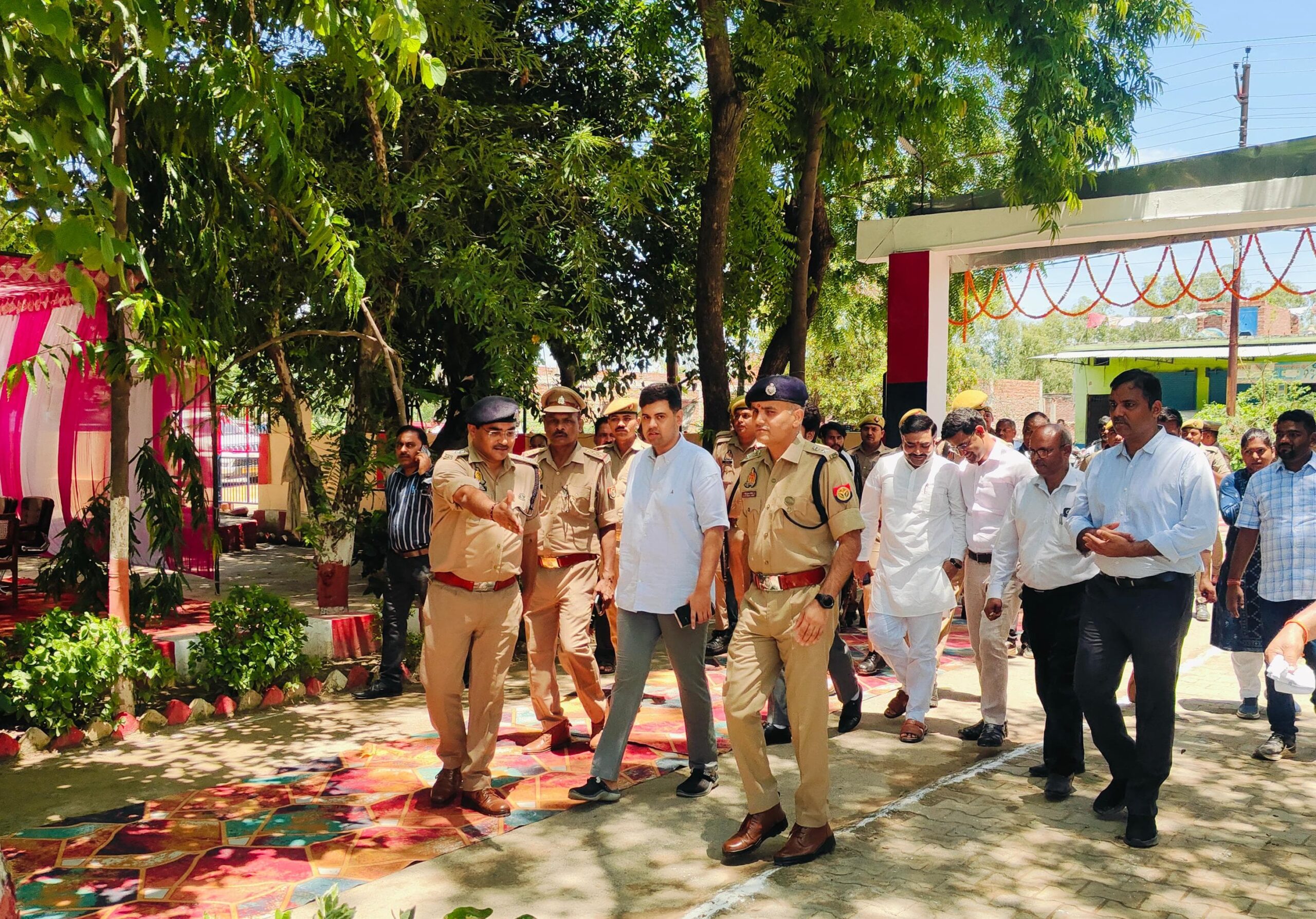 कोतवाली की बाउंड्री का उदघाटन करने के बाद निरीक्षण करते हुए एसपी और डीएम