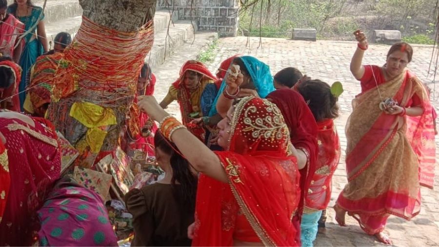 वट सावित्री व्रत पर वट वृक्ष की पूजा करती महिलाएं