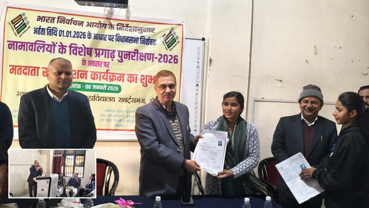 Sonbhadra: जिलाधिकारी एवं जिला निर्वाचन अधिकारी ने आज राजकीय महिला महाविद्यालय, छपका, राबर्ट्सगंज में विधानसभा निर्वाचन क्षेत्रों की निर्वाचक नामावलियों का विशेष पुनरीक्षण 2026 का उद्घाटन किया। कार्यक्रम में छात्रों और शिक्षकों की उपस्थिति रही। जिलाधिकारी ने इस अवसर पर उपस्थित छात्राओं को संबोधित करते हुए बताया कि भारत निर्वाचन आयोग द्वारा यह विशेष पुनरीक्षण इसलिए किया जा रहा है ताकि कोई भी योग्य मतदाता अपने अधिकार से वंचित न रहे।