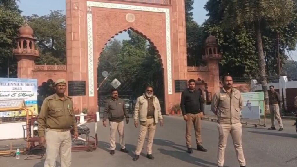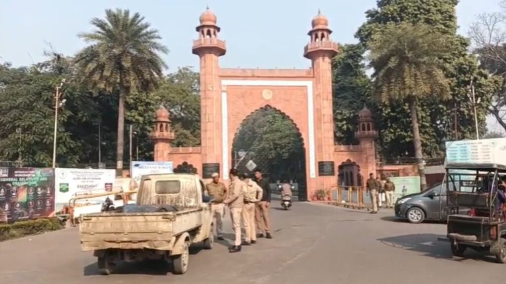 अलीगढ़ मुस्लिम यूनिवर्सिटी में पुलिस बल तैनात
