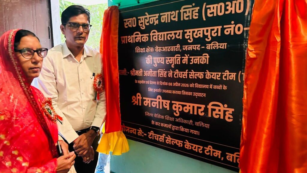 Ballia: बुधवार को बेरुआरबारी ब्लाक के प्राथमिक विद्यालय सुखपुरा में बुधवार को स्वर्गीय सुरेन्द्रनाथ सिंह की पुण्य स्मृति में बच्चों की सुविधा के लिए इन्वर्टर उपलब्ध कराया गया। यह नेक कार्य टीचर्स सेल्फ केयर टीम (टीएससीटी) के प्रेरणा से दिवंगत शिक्षक की पत्नी अनिता सिंह ने किया। टीएससीटी के कुछ दिनों पहले इन्हें 50 लाख रुपए की मदद की थी।