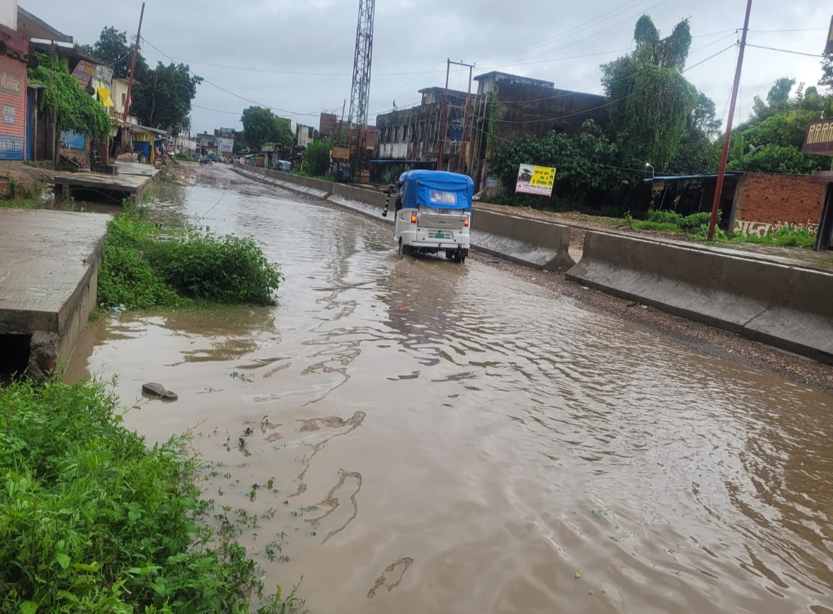स्थानीय सूत्रों के अनुसार, निर्माणाधीन रामजानकी मार्ग पर जल निकासी की कोई ठोस व्यवस्था नहीं की गई है। मार्ग के दोनों ओर नाला निर्माण के लिए महीनों पहले खुदाई की गई थी, लेकिन काम अधूरा ही छोड़ दिया गया। वहीं, सड़क अधूरी होने के बावजूद डीवाइडर बना दिए गए हैं, जिसके कारण पानी निकलने का रास्ता पूरी तरह बंद हो गया है। परिणामस्वरूप सड़क पर गहराई तक पानी भर गया है, जिससे भारी वाहन फंसने का खतरा बना हुआ है।