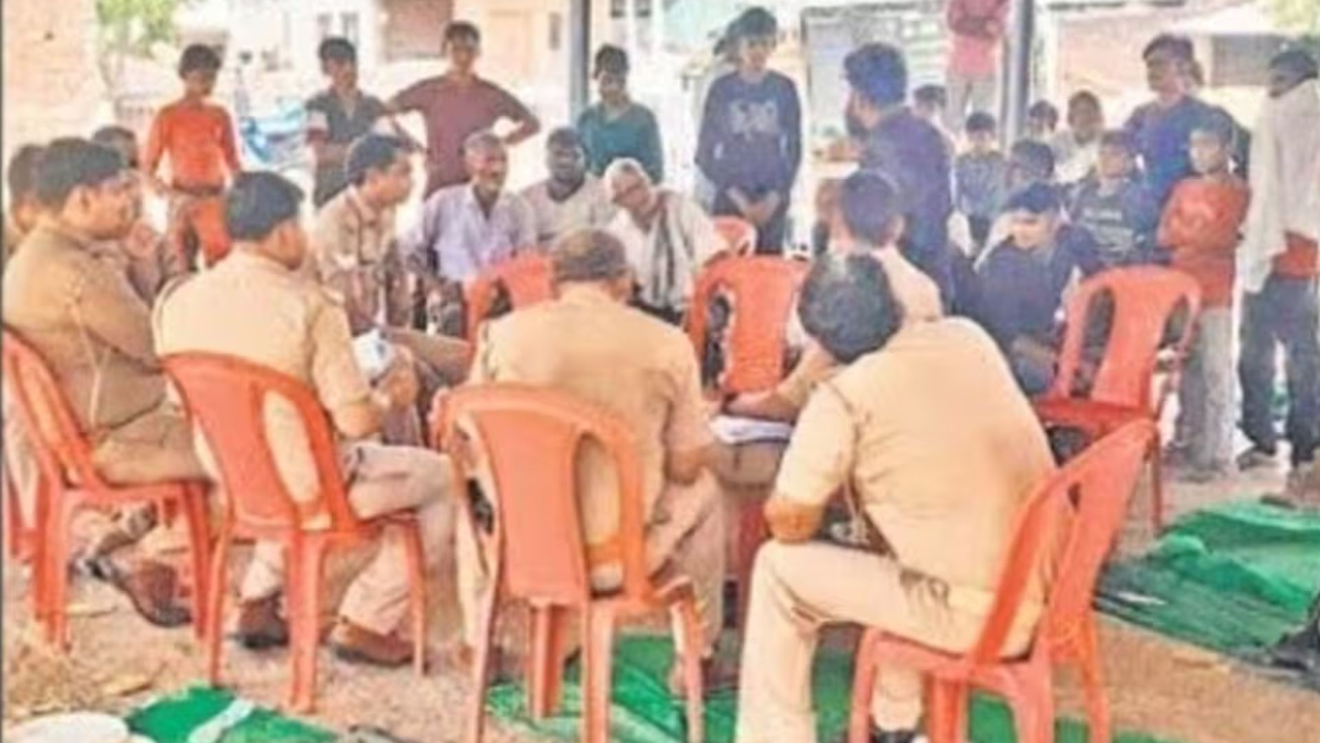 मथुरा के गांव भूरेका में दलित लड़की की शादी के दौरान तैनात पुलिस। (Source-Google)
