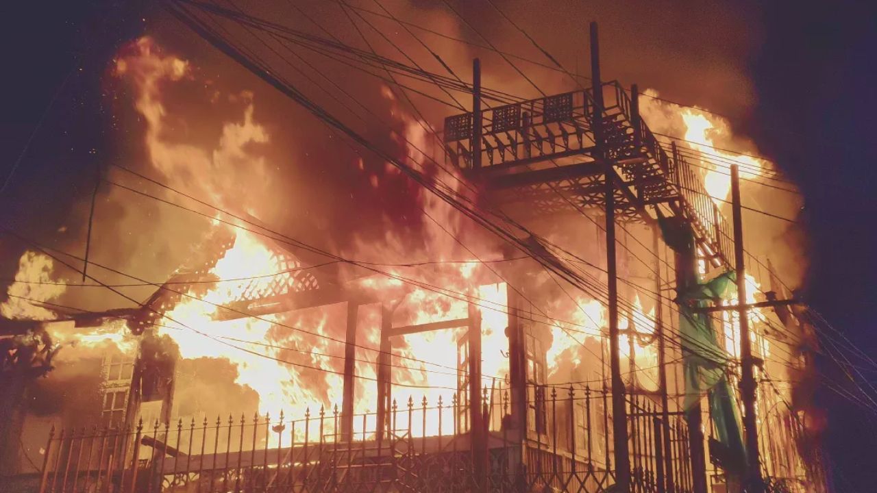 धू-धू कर जलता मकान