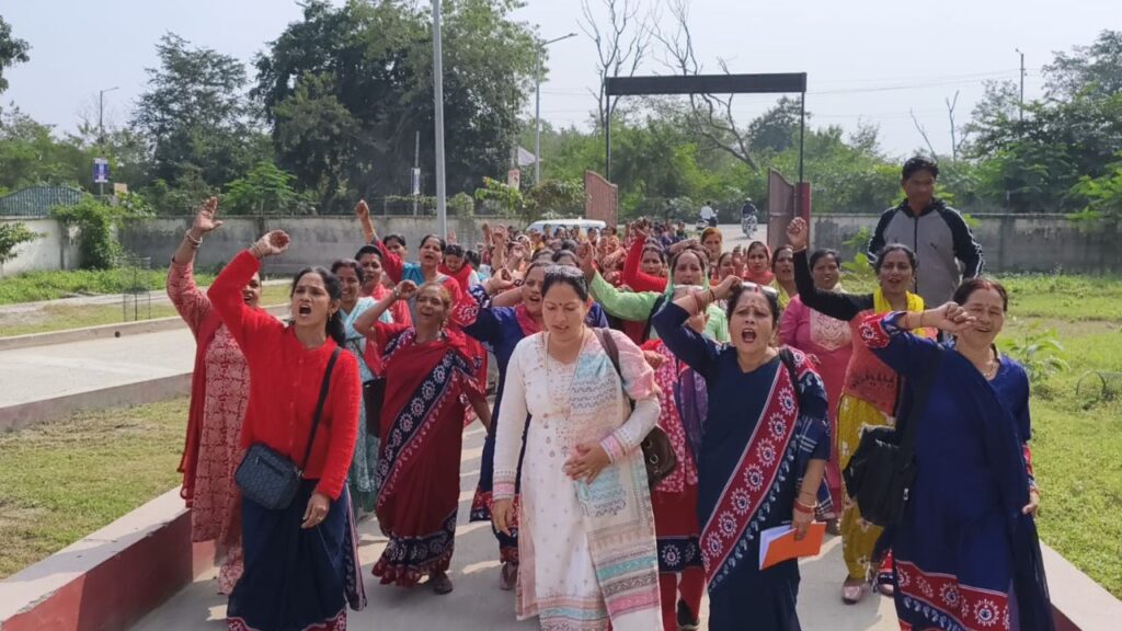 डोईवाला में आंगनबाड़ी कार्यकत्रियों का प्रदर्शन