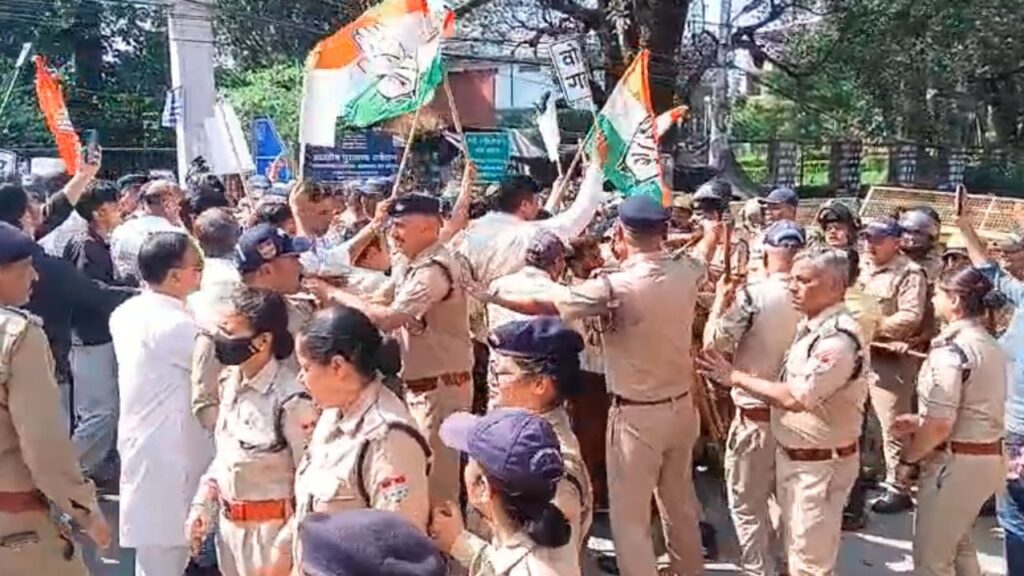 कांग्रेस कार्यकर्ताओं को सीएम आवास जाने से रोकती पुलिस