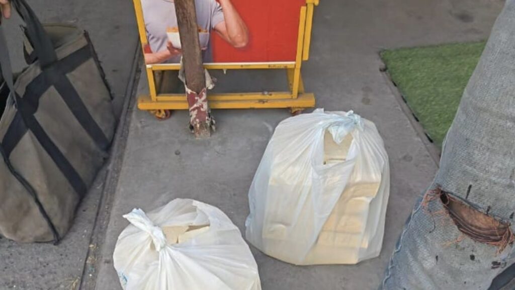 बुधवार को डोईवाला बाजार में एक फूड कंपनी के कर्मचारी खुली प्लास्टिक पॉलिथिन में टोफू और पनीर के बड़े-बड़े टुकड़े लेकर पहुंचे। इन प्लास्टिक थैलियों में 10 से 20 किलोग्राम टोफू रखा हुआ था। इन थैलियों में न तो कोई पैकिंग थी, न ही लेबल, बैच नंबर या एक्सपायरी तिथि। खाद्य सुरक्षा के अनुसार यह पूरी तरह से अवैध है और इससे स्वास्थ्य पर गंभीर खतरे का खतरा हो सकता है।