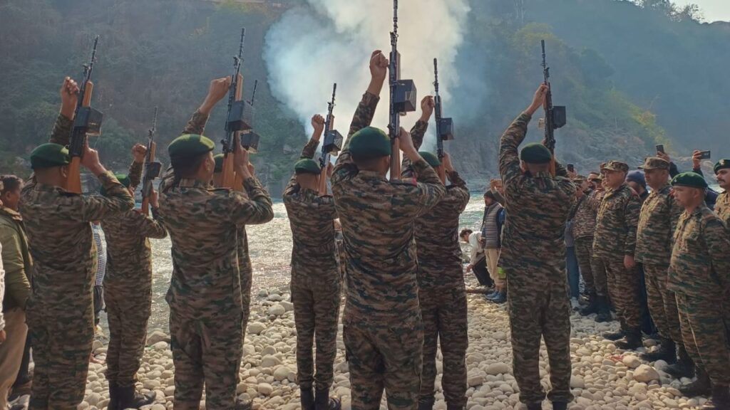 Rudraprayag: देश की रक्षा करते हुए अपने प्राणों की आहुति देने वाले दशज्यूला पट्टी के आगर गांव निवासी भारतीय सेना के जवान हवलदार रविन्द्र सिंह को मंगलवार को नम आंखों से अंतिम विदाई दी गई। अलकनंदा और मंदाकिनी के पावन संगम, रुद्रप्रयाग में पूरे सैन्य सम्मान के साथ उनका अंतिम संस्कार किया गया। इस दौरान क्षेत्र “भारत माता की जय” और “शहीद अमर रहें” के नारों से गूंज उठा।