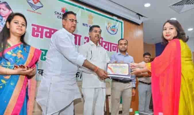 विकास भवन सभागार में बुधवार को संपूर्णता अभियान के तहत सम्मान समारोह का आयोजन भव्य रूप से किया गया। समारोह का शुभारंभ जिलाधिकारी मयूर दीक्षित, जिला पंचायत अध्यक्ष किरण सिंह चौधरी, रानीपुर विधायक आदेश चौहान एवं मुख्य विकास अधिकारी आकांक्षा कोंडे ने दीप प्रज्वलन कर किया।