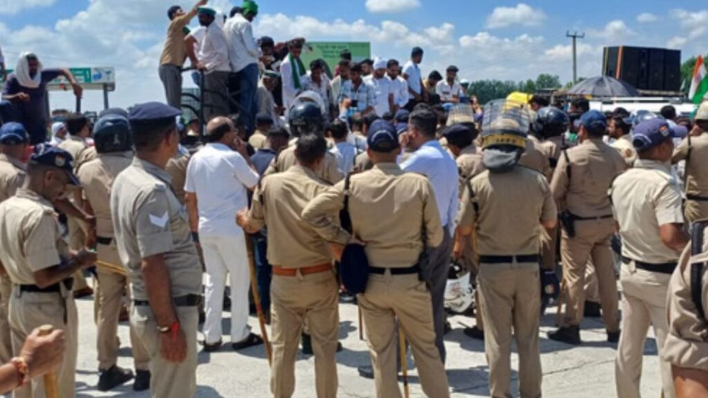 टोल प्लाजा पर किसानों का हंगामा