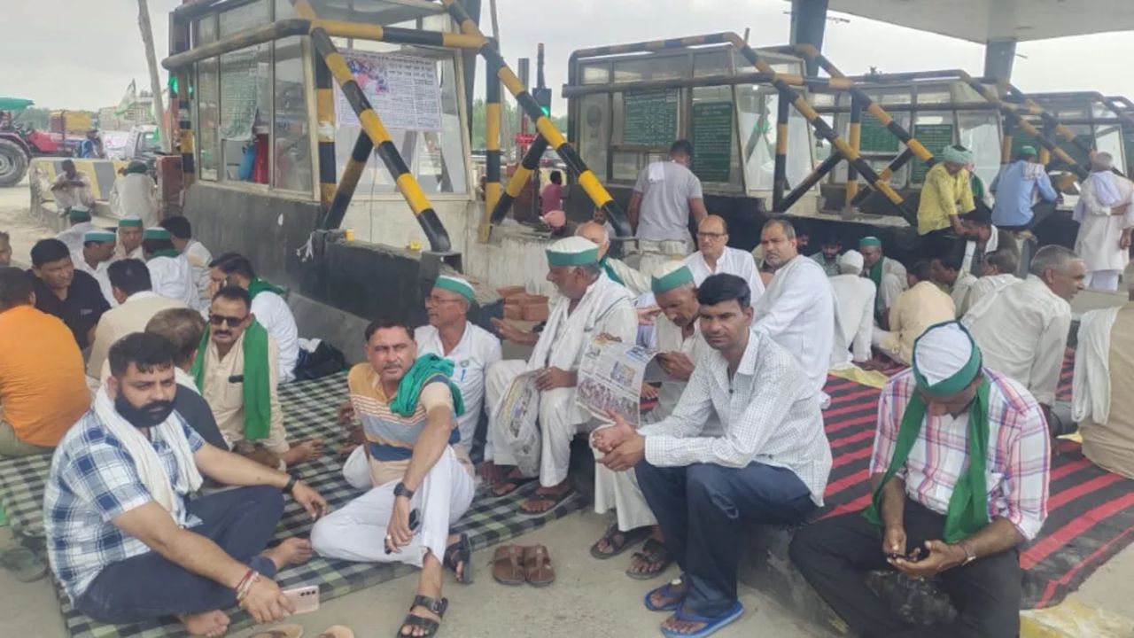 बहादराबाद टोल प्लाजा पर किसानों को धरना