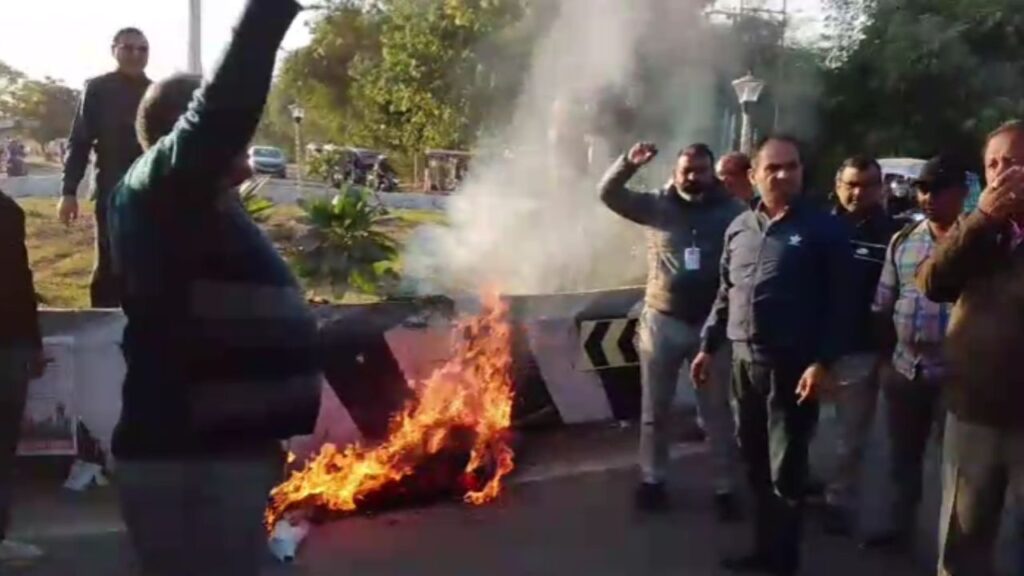 Haridwar: जनपद में ब्राह्मण समाज की बेटियों के पर कथित आपत्तिजनक और अशोभनीय टिप्पणी के विरोध में बुधवार को हरिद्वार में उग्र प्रदर्शन हुआ। ब्राह्मण जागृति संस्था के नेतृत्व में भेल सेक्टर-4 चौराहे पर संतोष वर्मा का पुतला दहन कर जमकर नारेबाजी की गई। बड़ी संख्या में एकत्र हुए विप्र समाज के लोगों ने न्यायपालिका से स्वतः संज्ञान लेकर आरोपी अधिकारी पर कठोर दंडात्मक कार्रवाई की मांग उठाई।