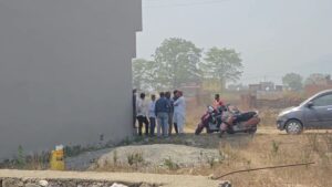 अवैध प्लाटिंग के खिलाफ कार्रवाई के बाद एकत्रित लोग