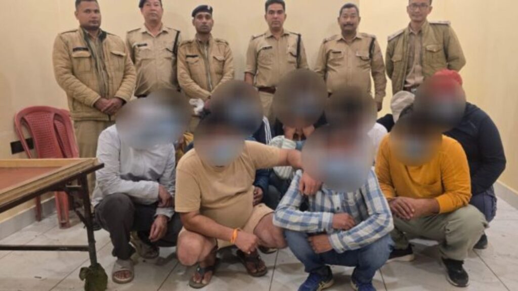 Nainital: नैनीताल जिले में एसएसपी प्रहलाद नारायण मीणा के सख्त निर्देश के बाद भीमताल पुलिस ने शनिवार को बड़ी कार्रवाई करते हुए जुए के अड्डे पर छापेमारी की है। इस कार्रवाई में पुलिस ने मौके से 13 जुआरियों को गिरफ्तार किया है और उनके पास से साढ़े चार लाख रुपये से ज्यादा की नकदी बरामद की है। इस कार्रवाई से पूरे क्षेत्र में हड़कंप मच गया। यह छापेमारी बाईपास रोड स्थित एक निजी टेंट हाउस परिसर में की गई।