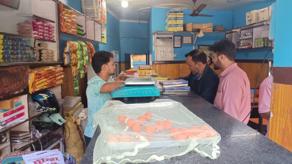 मिठाई की दुकान पर छापेमारी के दौरान खाद्य विभाग की टीम