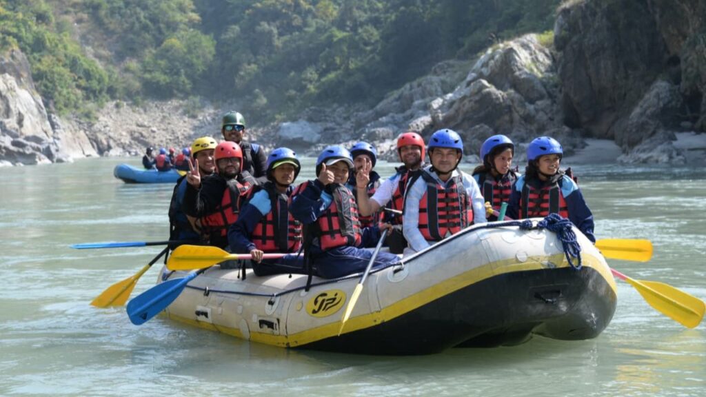 रिवर राफ्टिंग के दौरान प्रतिभागियों को सुरक्षा उपकरण और प्रशिक्षित गाइड प्रदान किए गए। नदी के सुरम्य दृश्य और रोमांचक पानी के मार्ग ने सभी का मन मोह लिया।