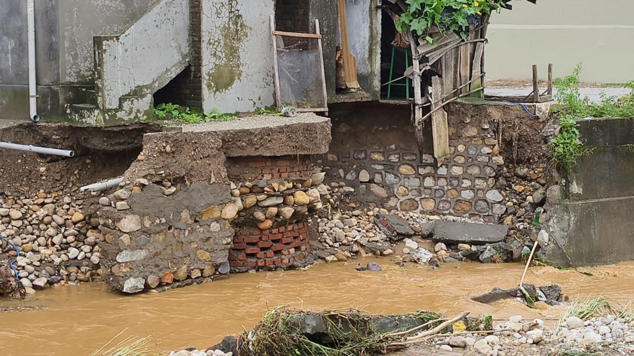 Dehradun: बीती रात हुई मूसलधार बारिश ने देहरादून के कई इलाकों में तबाही मचा दी। शनिवार रात 1 बजे से शुरू हुई बारिश ने झबरावाला, भानियावाला और केशवपुरी बस्ती जैसे इलाकों को बुरी तरह प्रभावित किया। झबरावाला मुस्लिम बस्ती में राजाजी टाइगर रिजर्व से आए बरसाती खाले का पानी तेजी से फैल गया, जिससे पुल की विंग दीवार क्षतिग्रस्त हो गई और पुल के गिरने का खतरा बना हुआ है। शहीद हसन नामक निवासी का शौचालय भूस्खलन में बह गया और मकान भी क्षतिग्रस्त हो गया, जिससे उनके परिवार के 13 सदस्य खतरे में हैं।