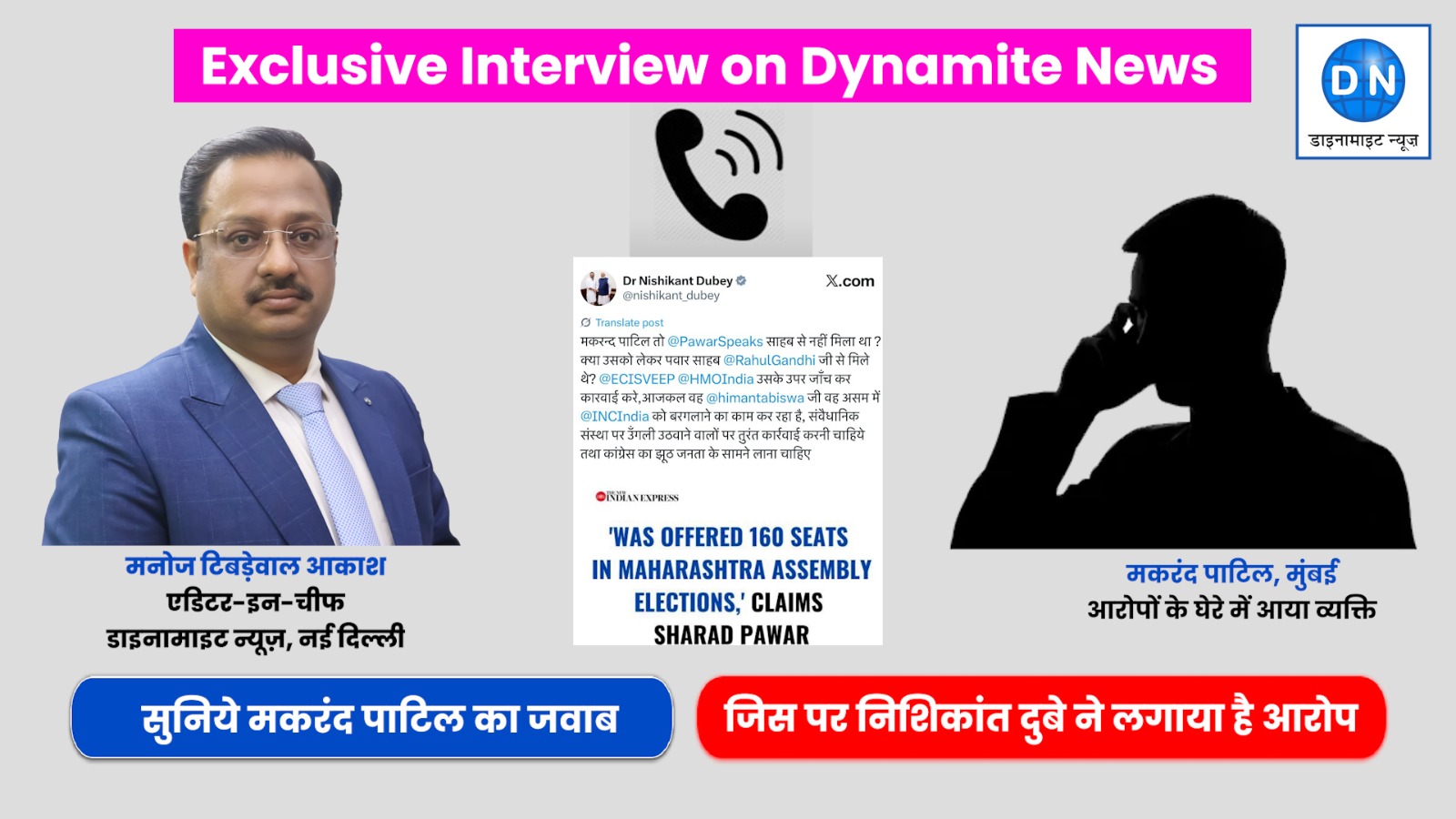 सांसद डा. निशिकांत दुबे ने जिस मकरंद पाटिल पर लगाया है शरद पवार से मिलने का आरोप, उसी मकरंद पाटिल का क्या है आरोपों पर जवाब, सुनिये डाइनामाइट न्यूज़ के इस सुपर एक्सक्लूसिव इंटरव्यू में