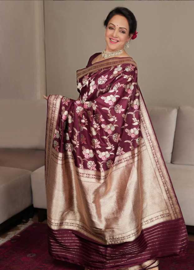 साड़ी में हेमा का स्टाइल सबसे ज्यादा पसंद किया जाता है खासकर कांजीवरम और सिल्क साड़ियाँ।
