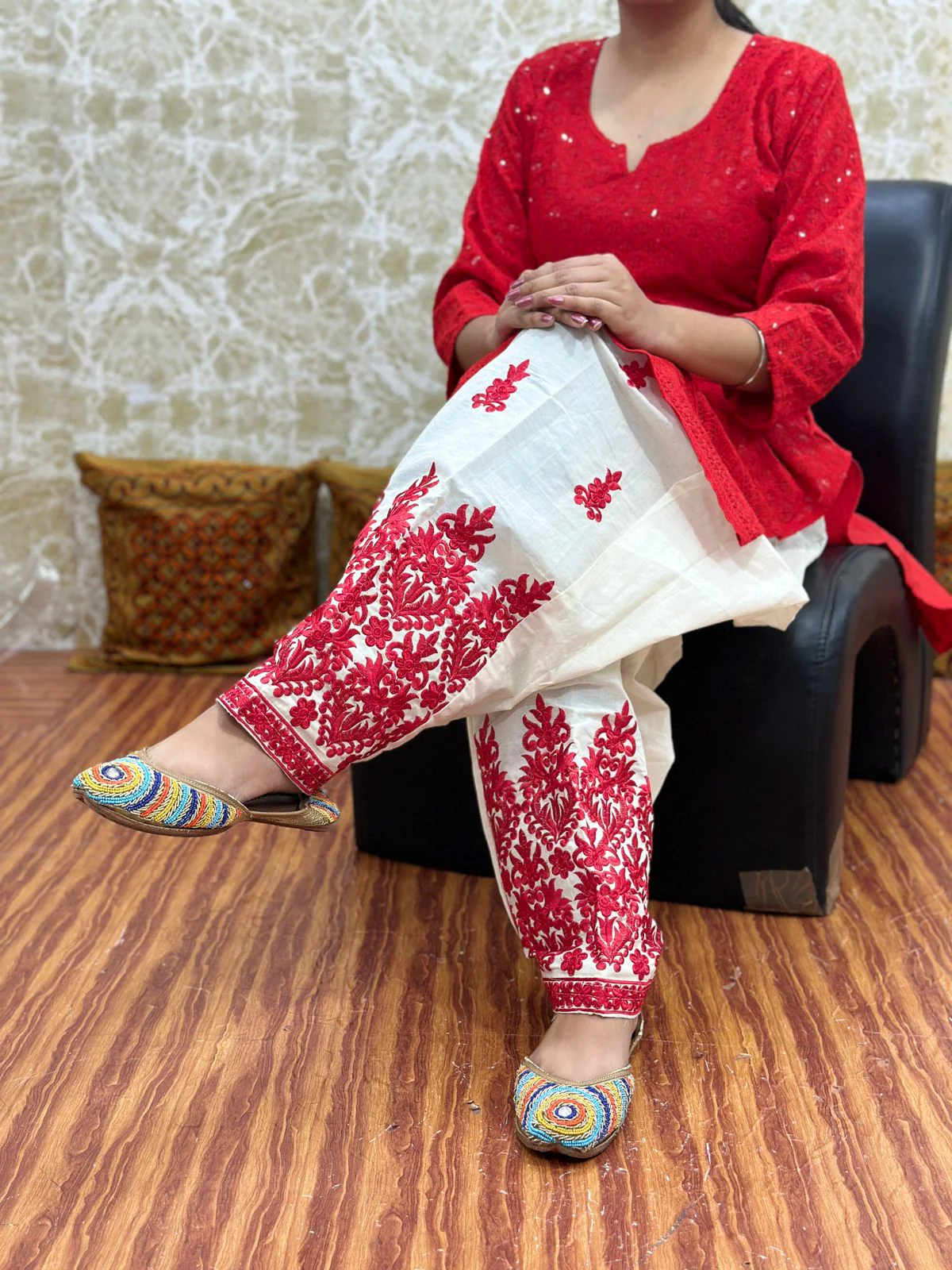 फ्लोई प्लाजो पैंट्स के साथ खूबसूरत कुर्ता पहनकर आप ट्रेडिशनल और मॉडर्न का बेहतरीन कॉम्बिनेशन पा सकती हैं। इसे स्टाइलिश ज्वेलरी और हेयरस्टाइल से पेयर करें।